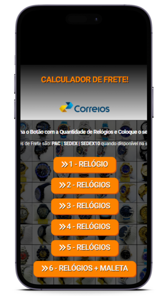 Várias quantidades de RELÓGIOS, Basta Colocar o CEP! Seu Cliente sabe o VALOR DO FRETE, Imediatamente.