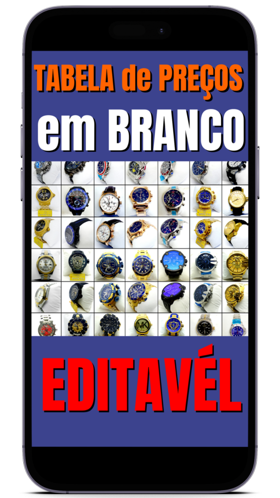 Tabela de Preços em Excel Atualizada com os Relógios Disponíveis em Estoque, com os Preços de Custos de AFILIADO. A Planilha é Toda PROGRAMADA para Você apenas colocar a sua Margem de LUCRO e ela CALCULA AUTOMATICAMENTE o seu PREÇO de VENDA!