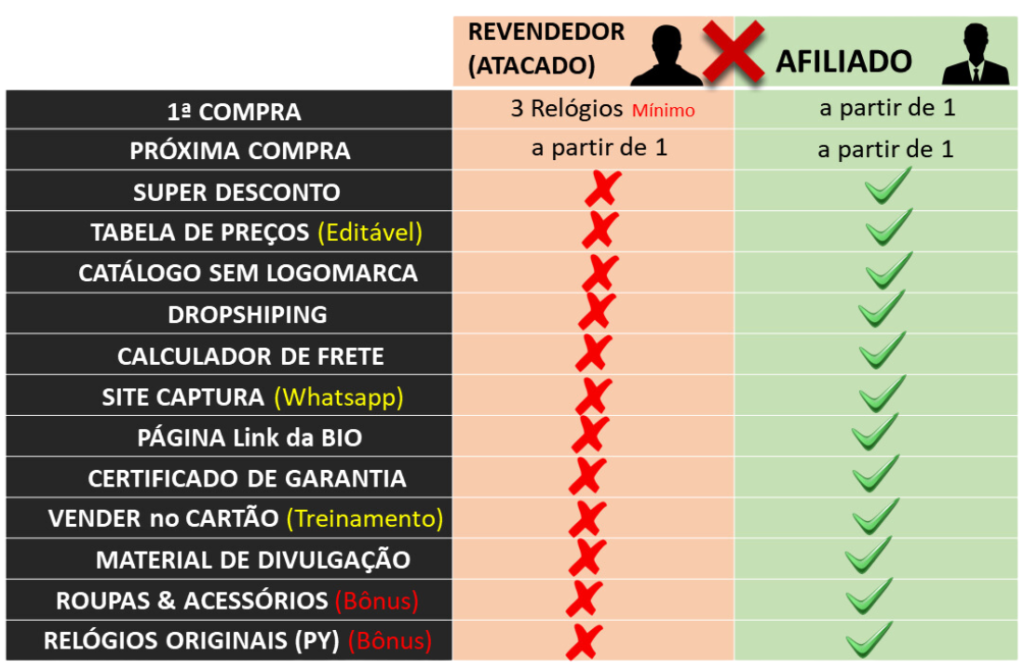 O Afiliado Garante um Super Desconto sobre o Valor de ATACADO de nossa Tabela de Preços.